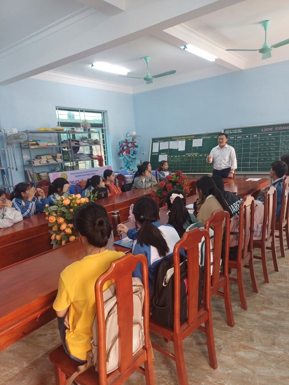 Đ/c Phan Văn Phùng - Bí thư chi bộ - Hiệu trưởng nhà trường gặp mặt dặn giò động viên các em trước kỳ thi